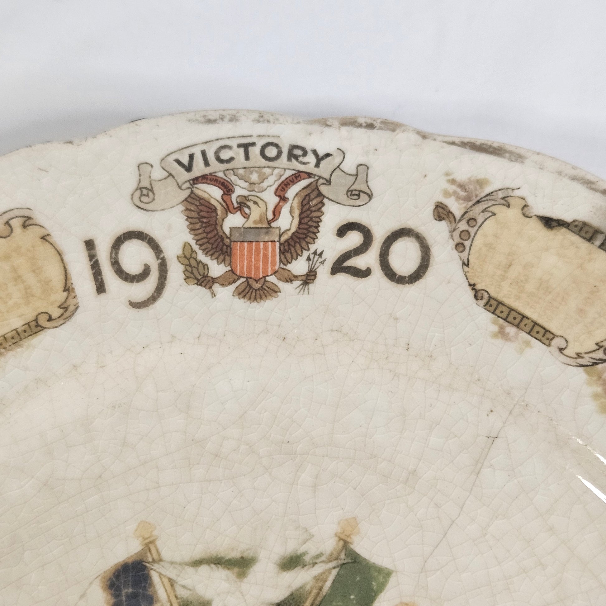 Antique 1920 World War 1 Victory calendar plate, D.E. McNicol, East Liverpool