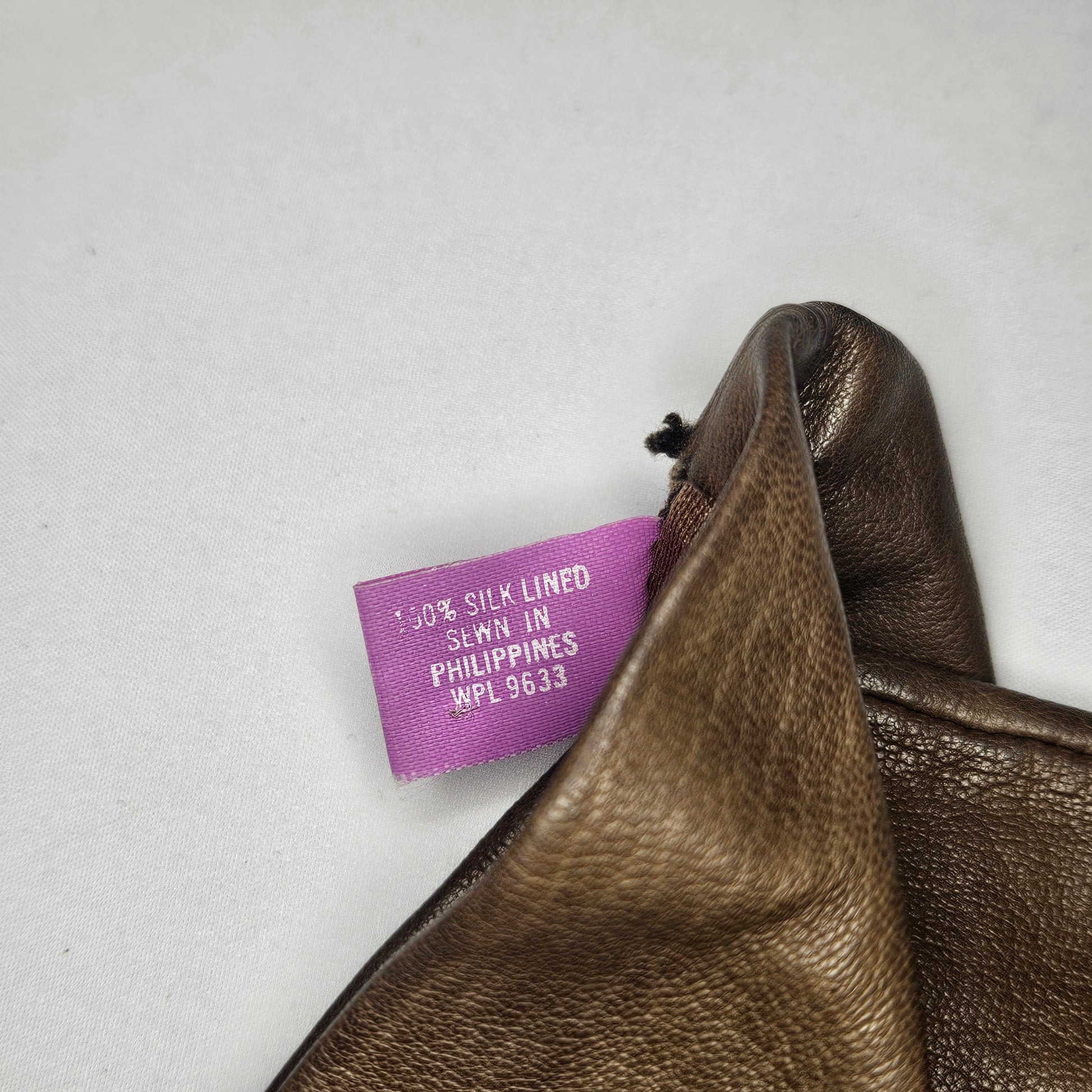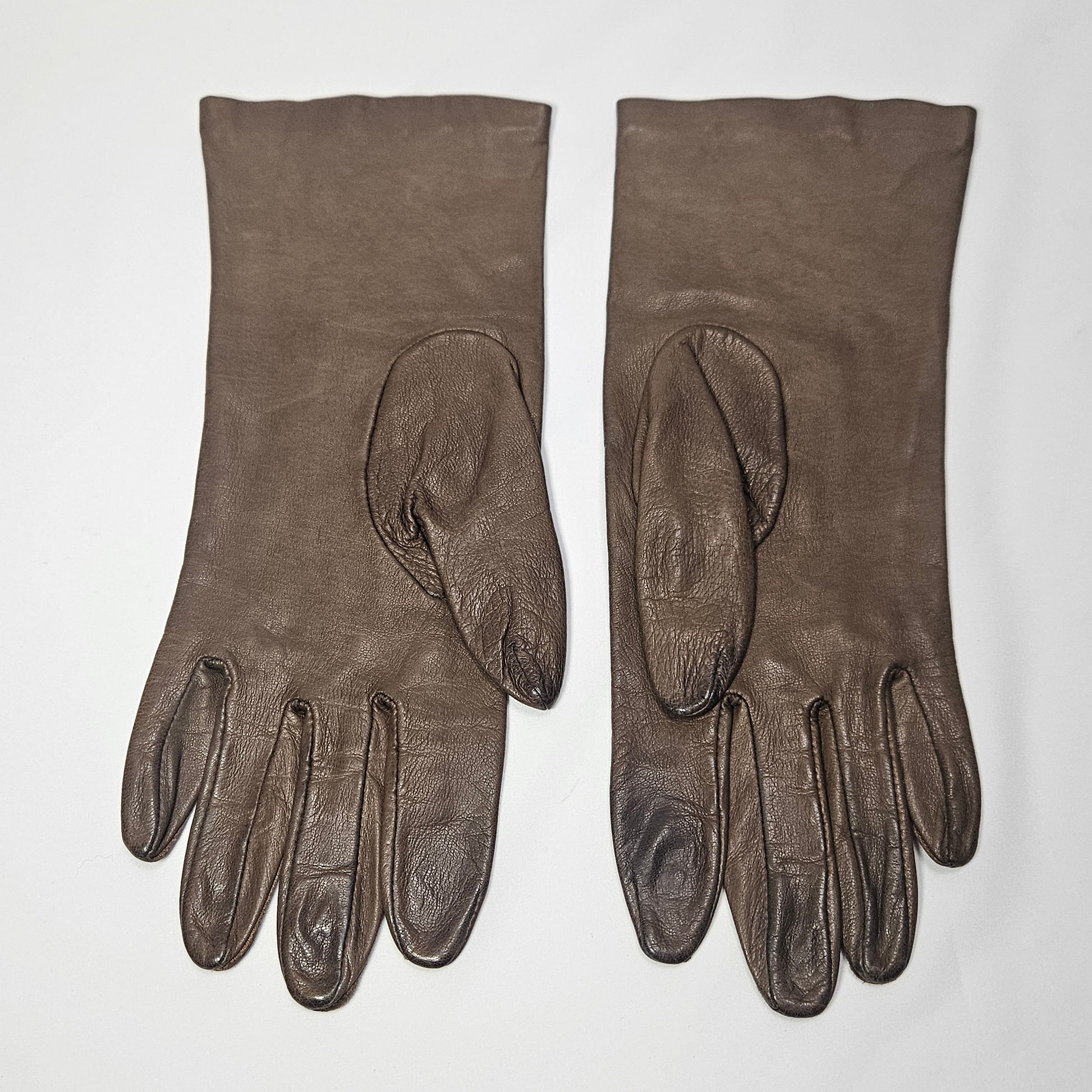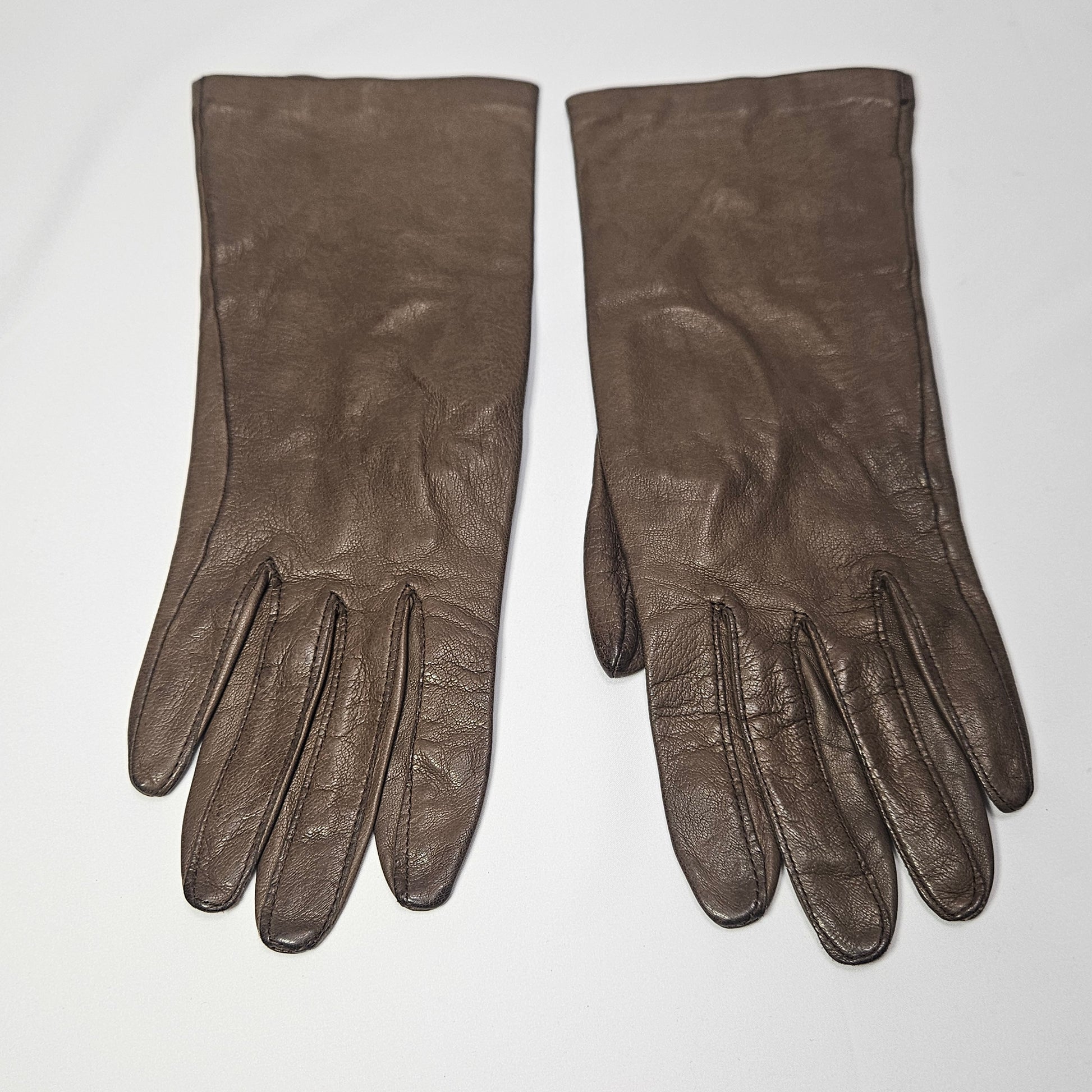 Vintage women's brown leather gloves by Grandoe, size 6.5, silk lined