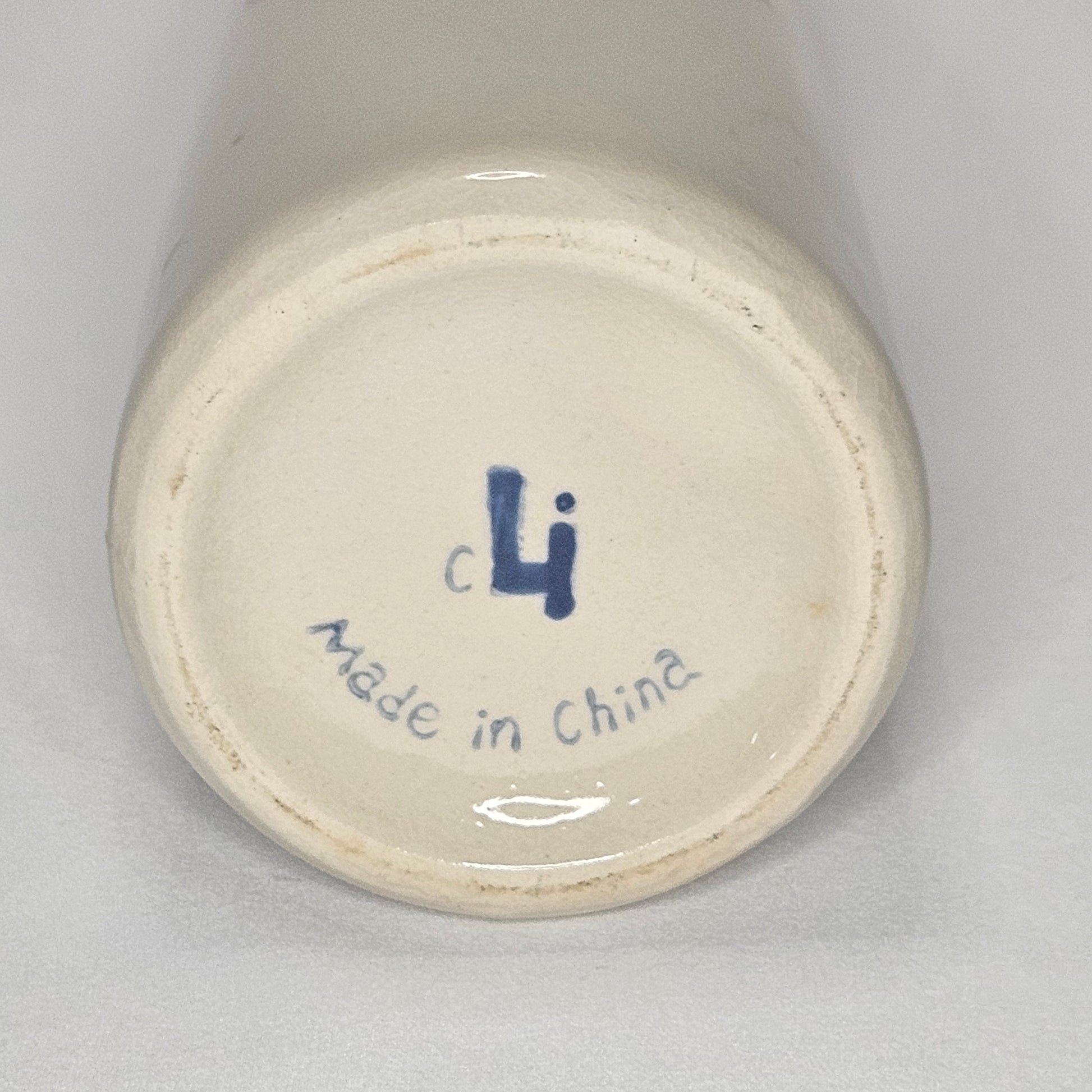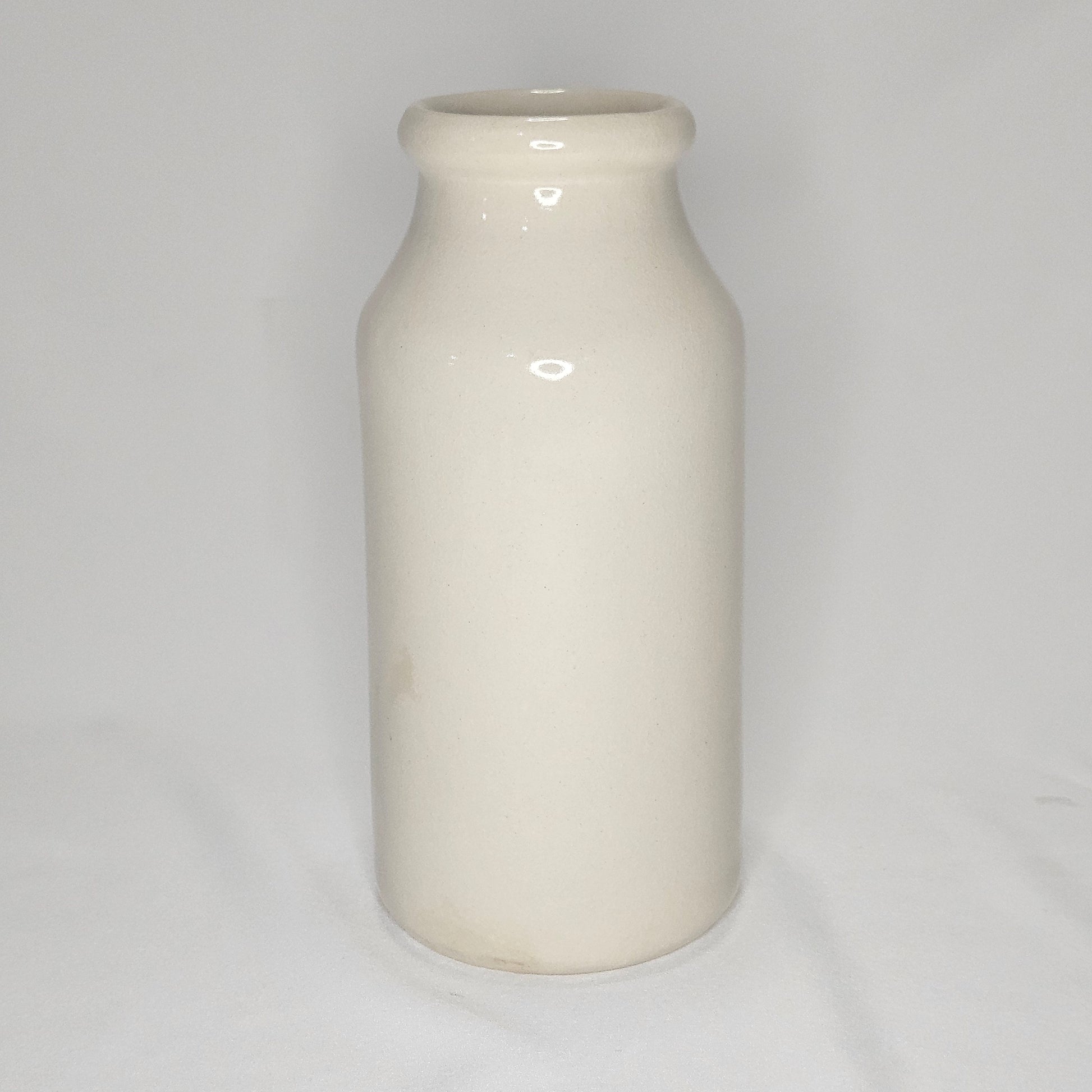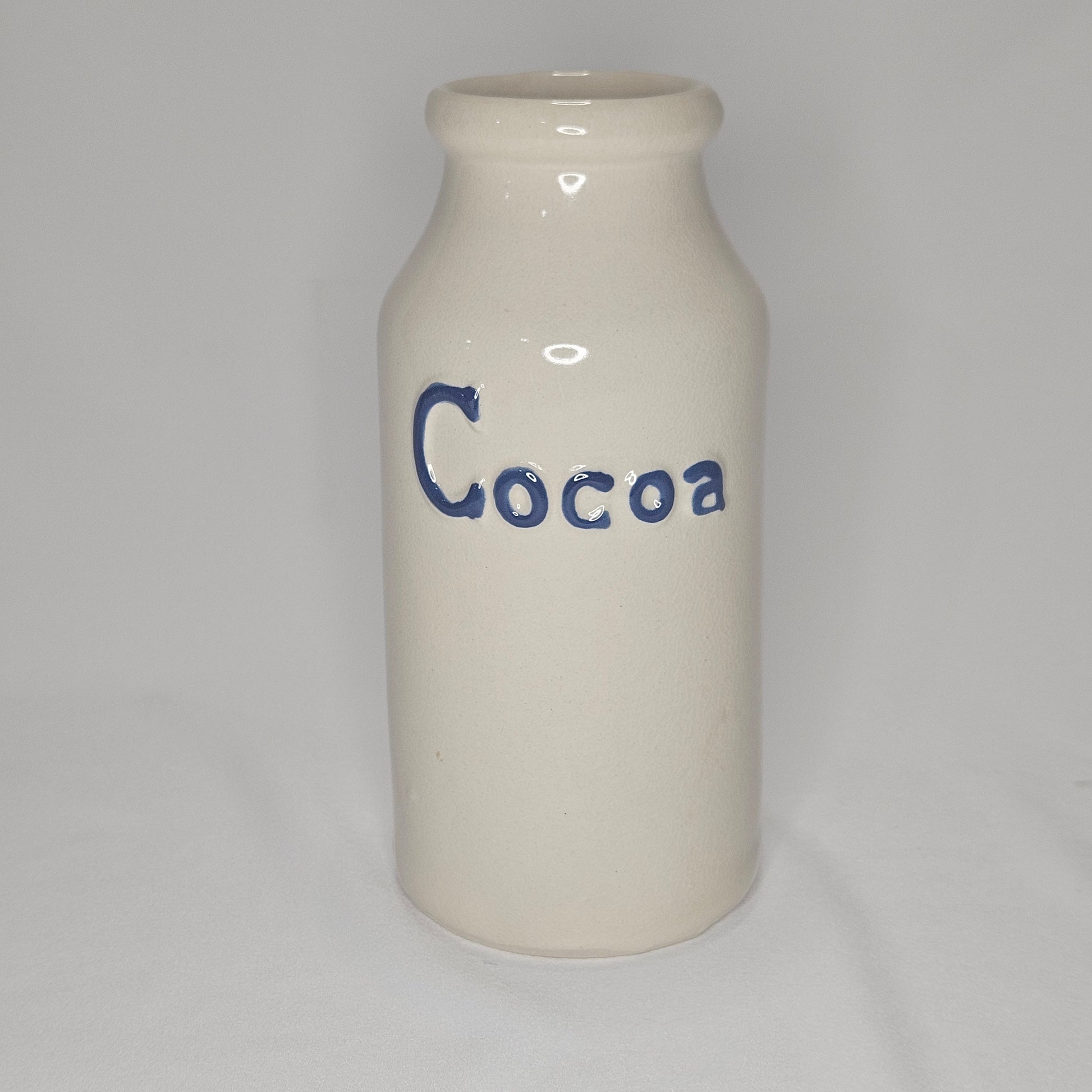 Vintage Cocoa milk jar vase. Has some light crazing and spots with slight color differences. 7 1/4 inches tall