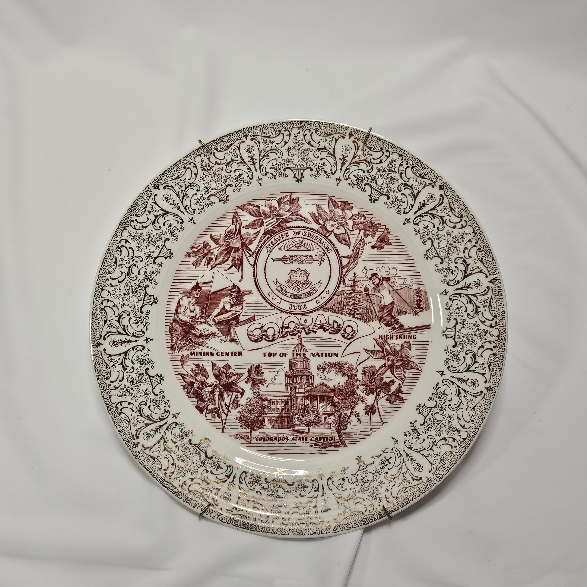 Colorado State decorative plate with hanger, red and gold, 10" diameter