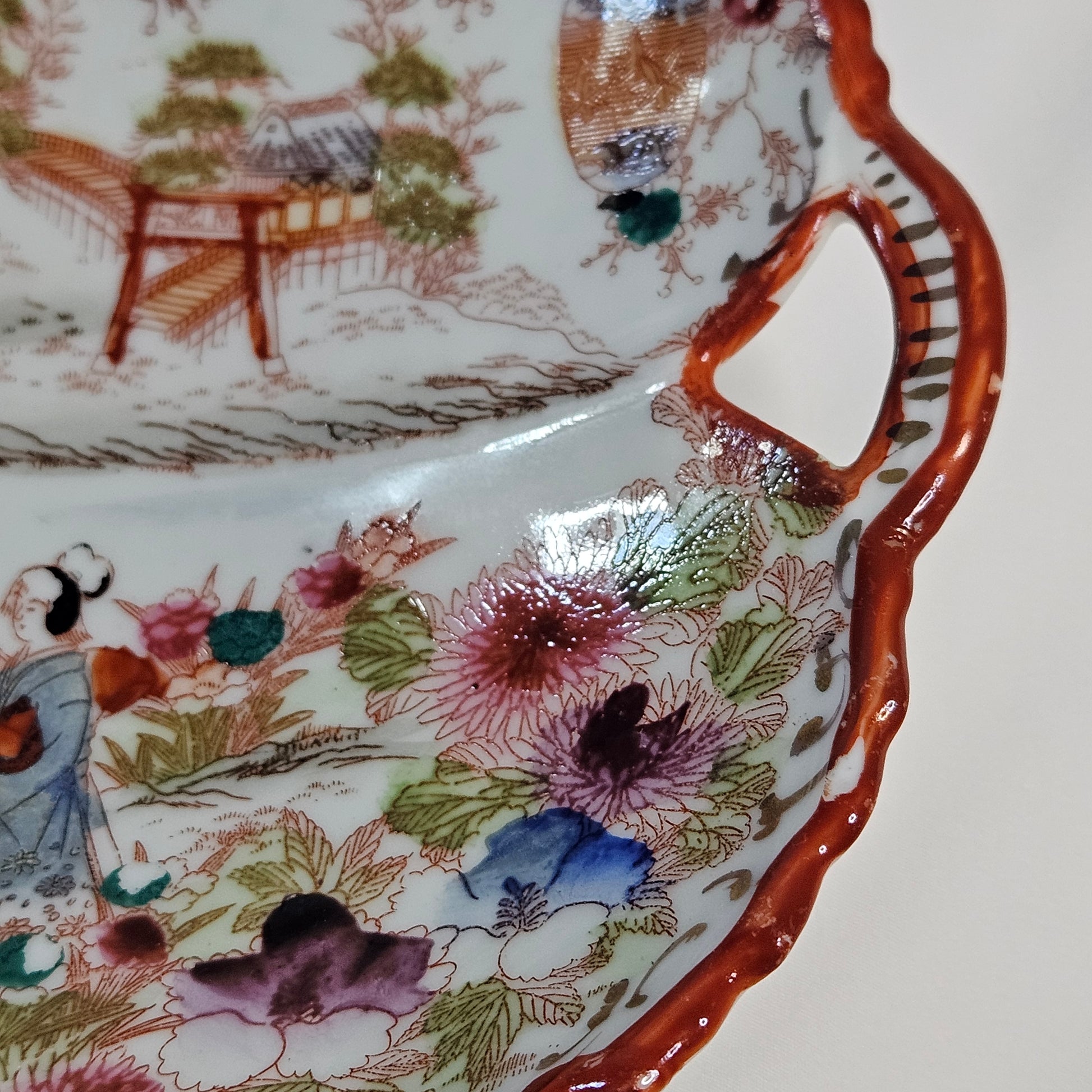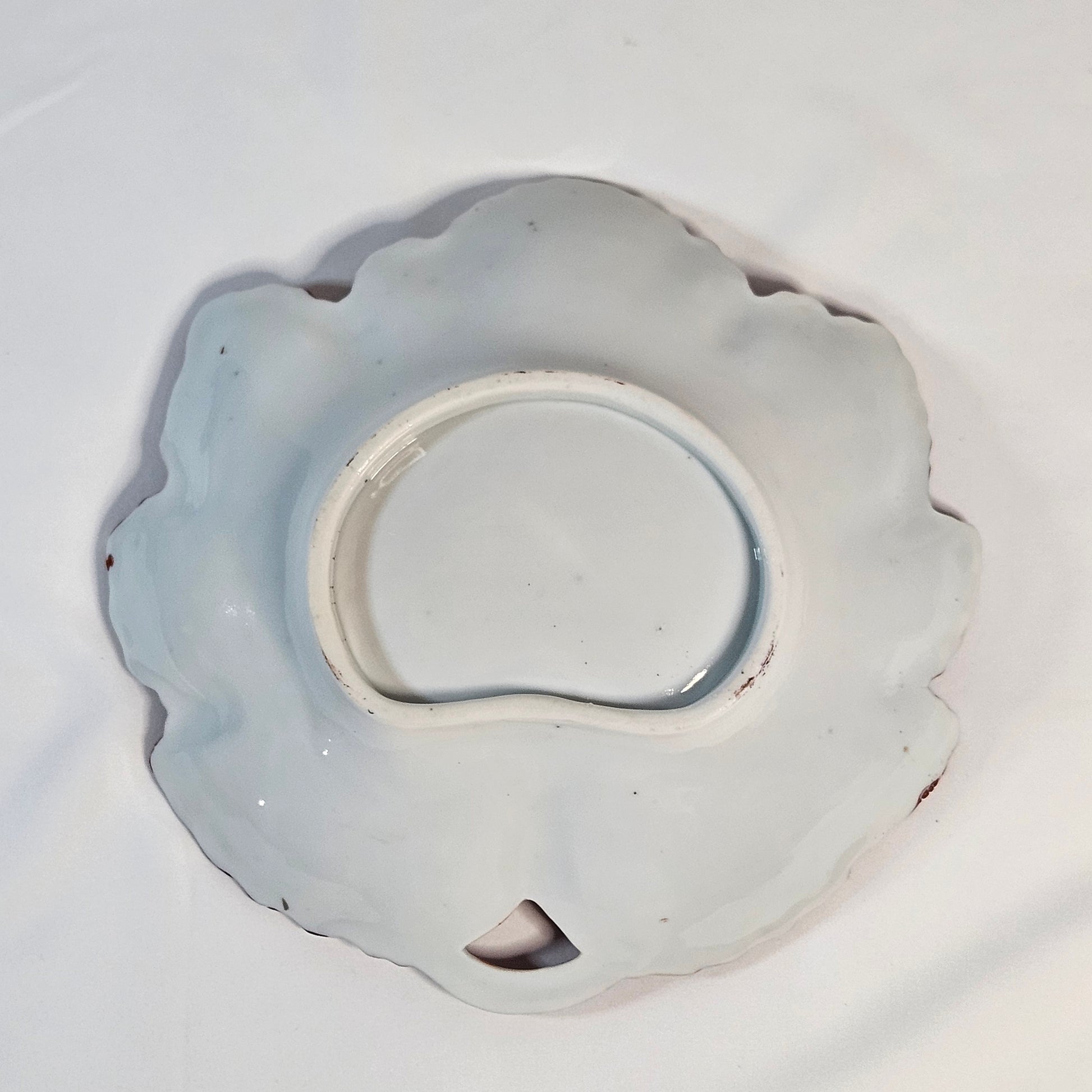 Vintahe hand painted porcelain plate, leaf shaped, 7.5" across, 1.75" tall