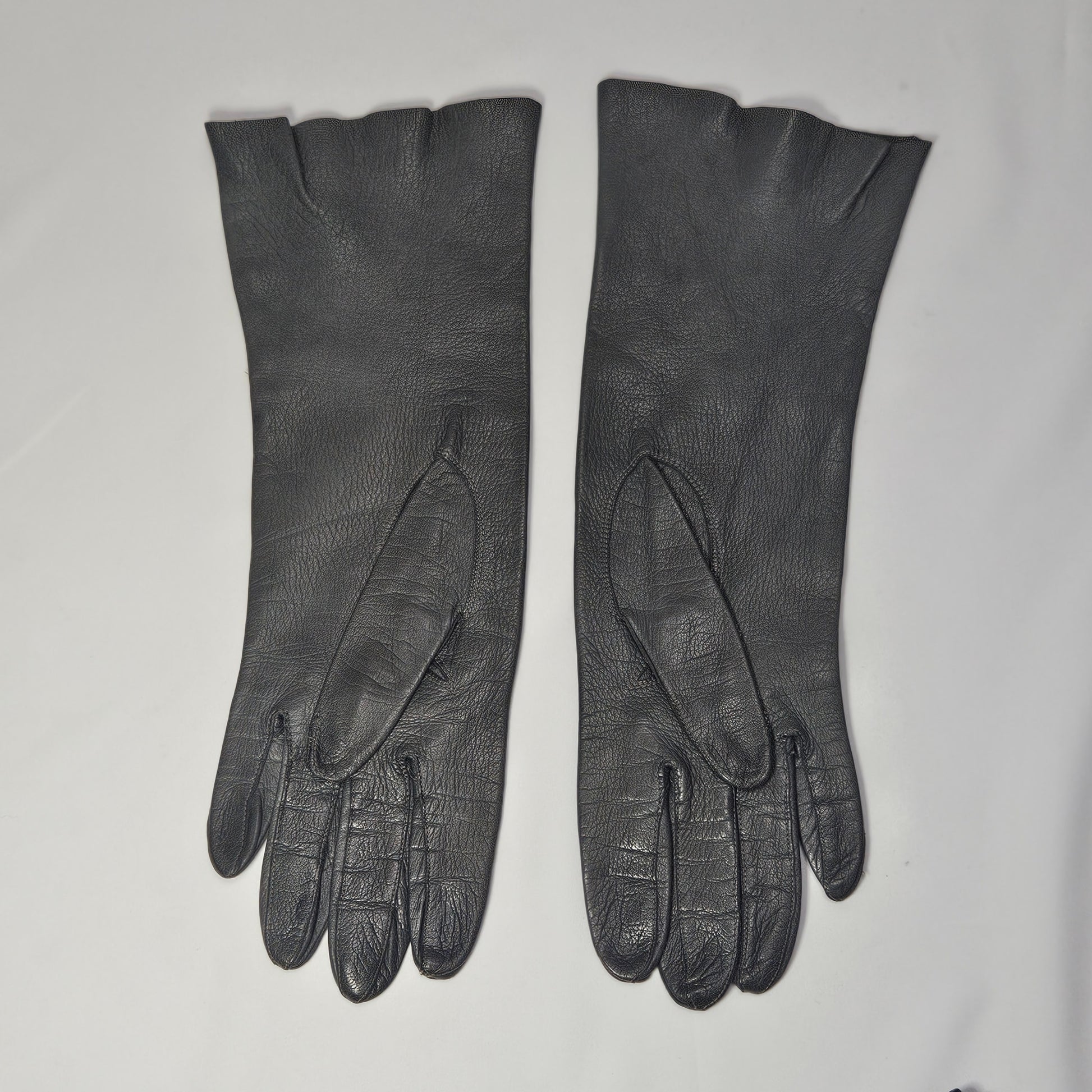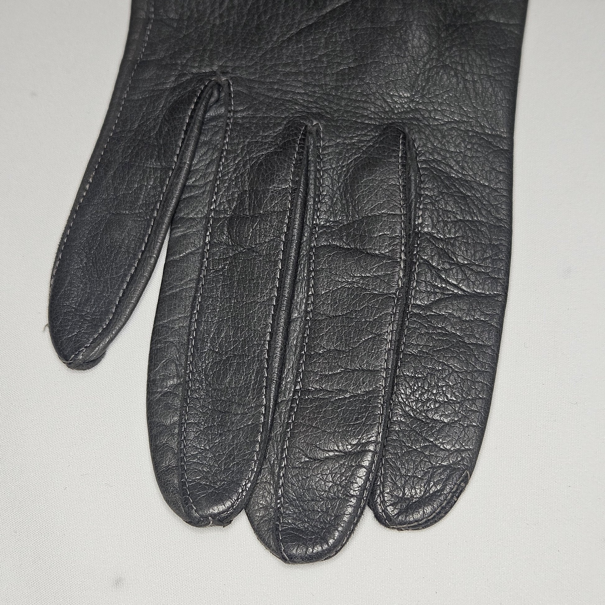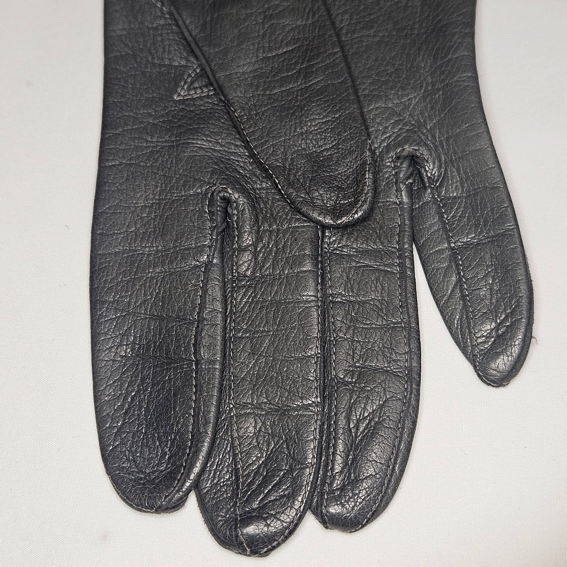 Vintage women's long grey leather unlined gloves. Made in Italy for Macy Associates.