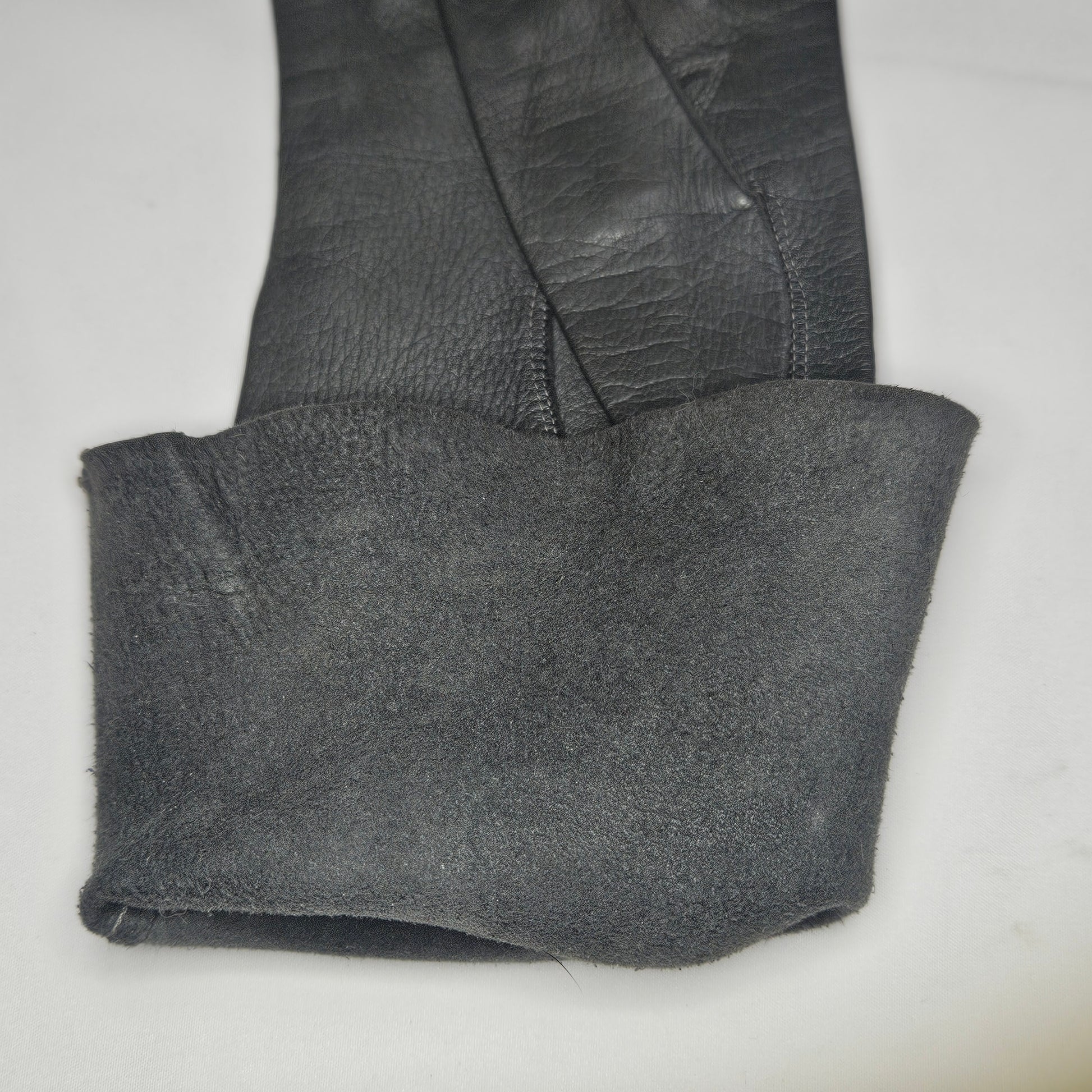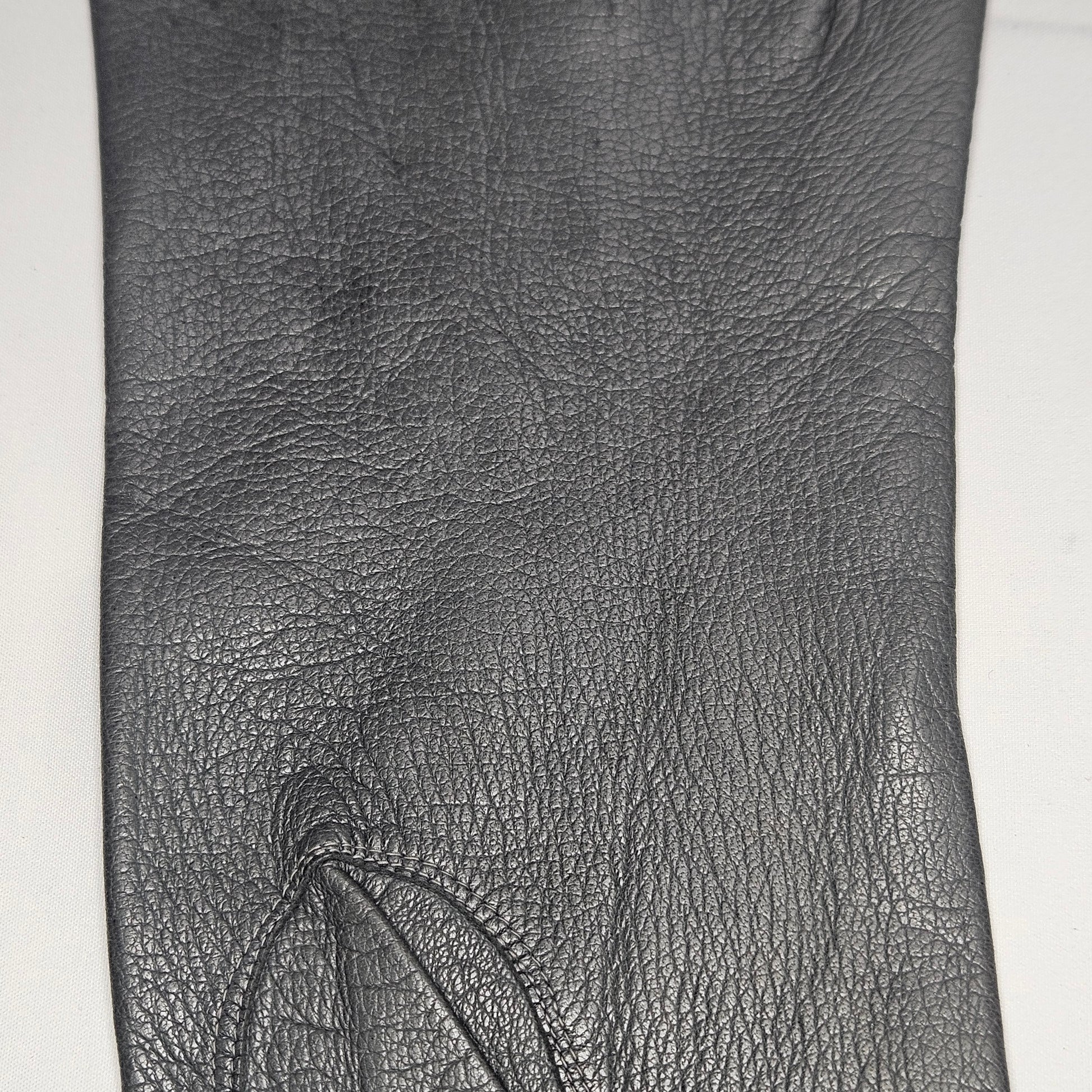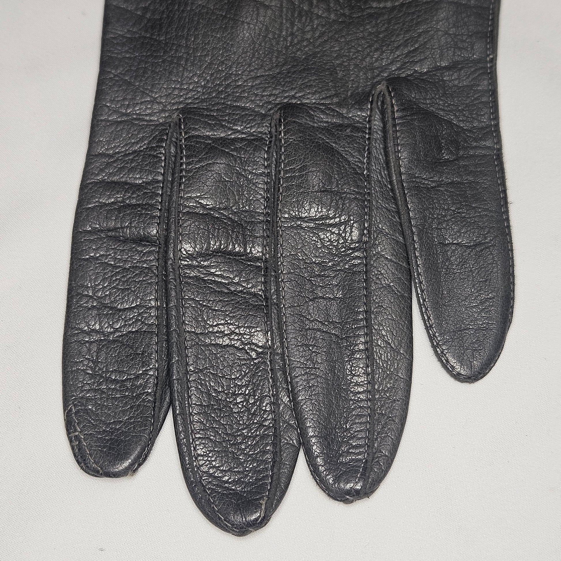 Vintage women's long grey leather unlined gloves. Made in Italy for Macy Associates.