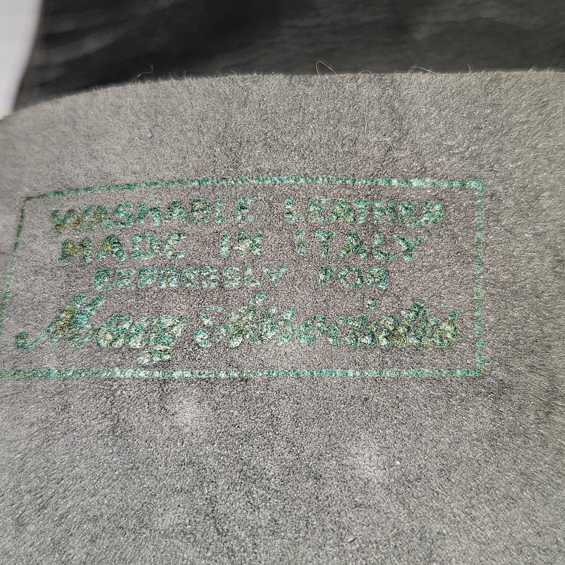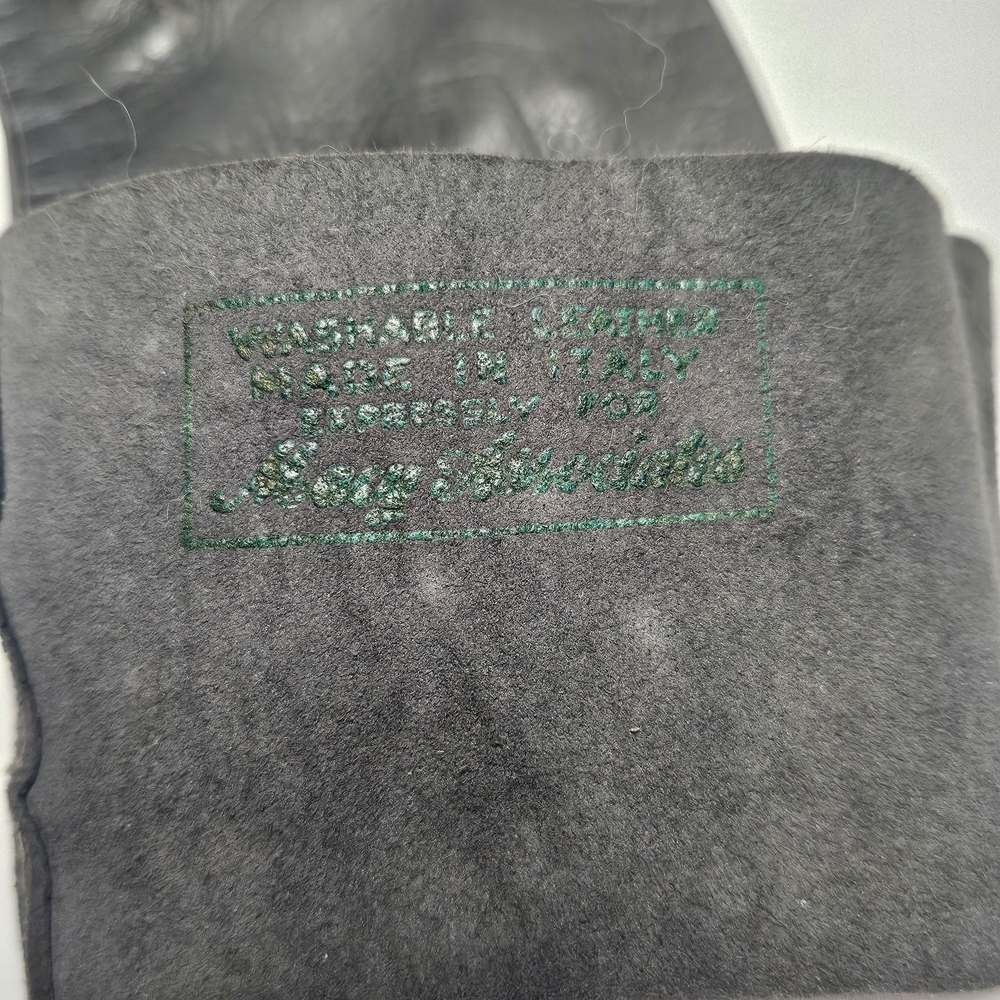 Vintage women's long grey leather unlined gloves. Stamped label on inside reads Washable leather, Made in Italy, Espressly for Macy Associates.