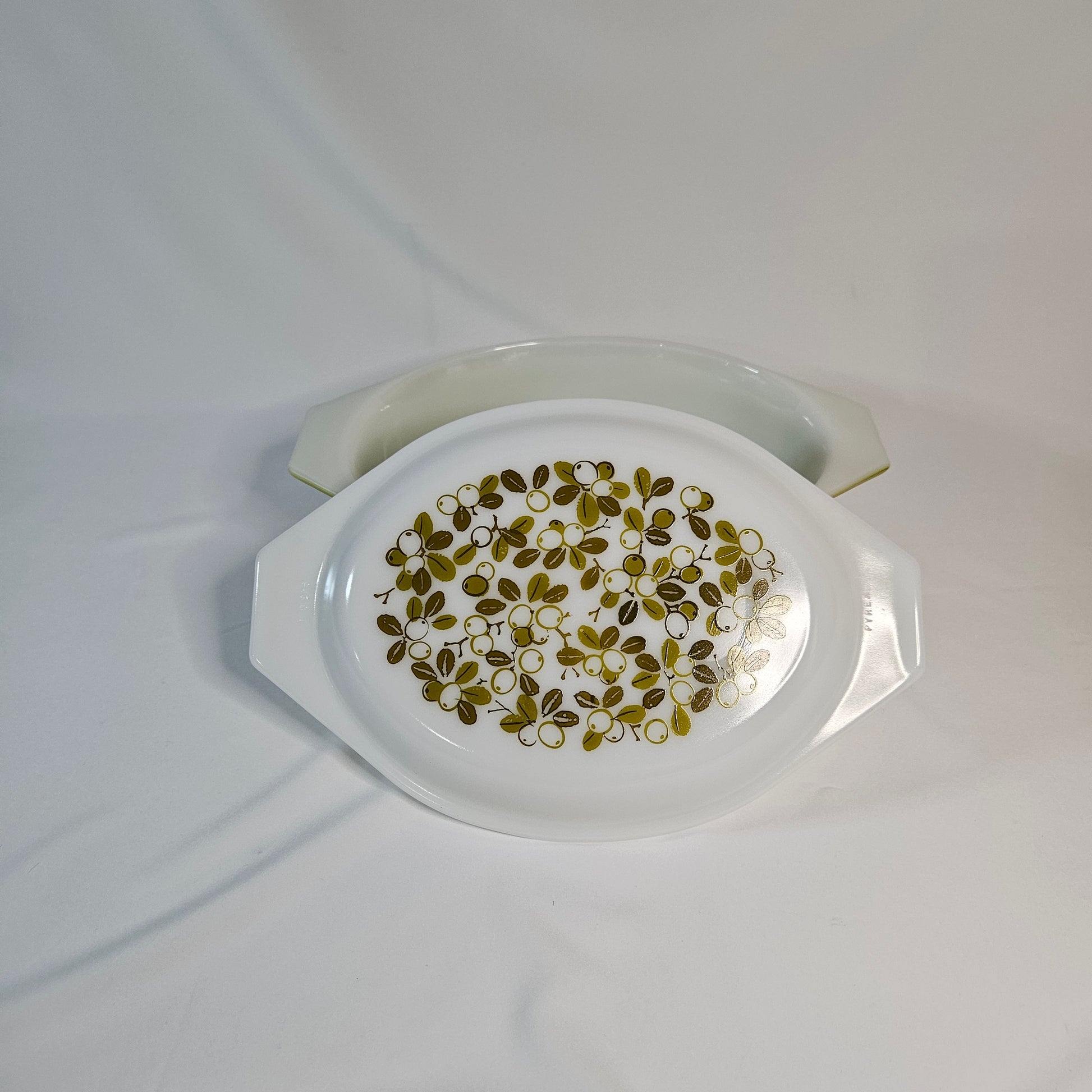 Vintage Pyrex Verde Olive Green Oval Casserole Baking Dish, 1.5 QT w/lid #043