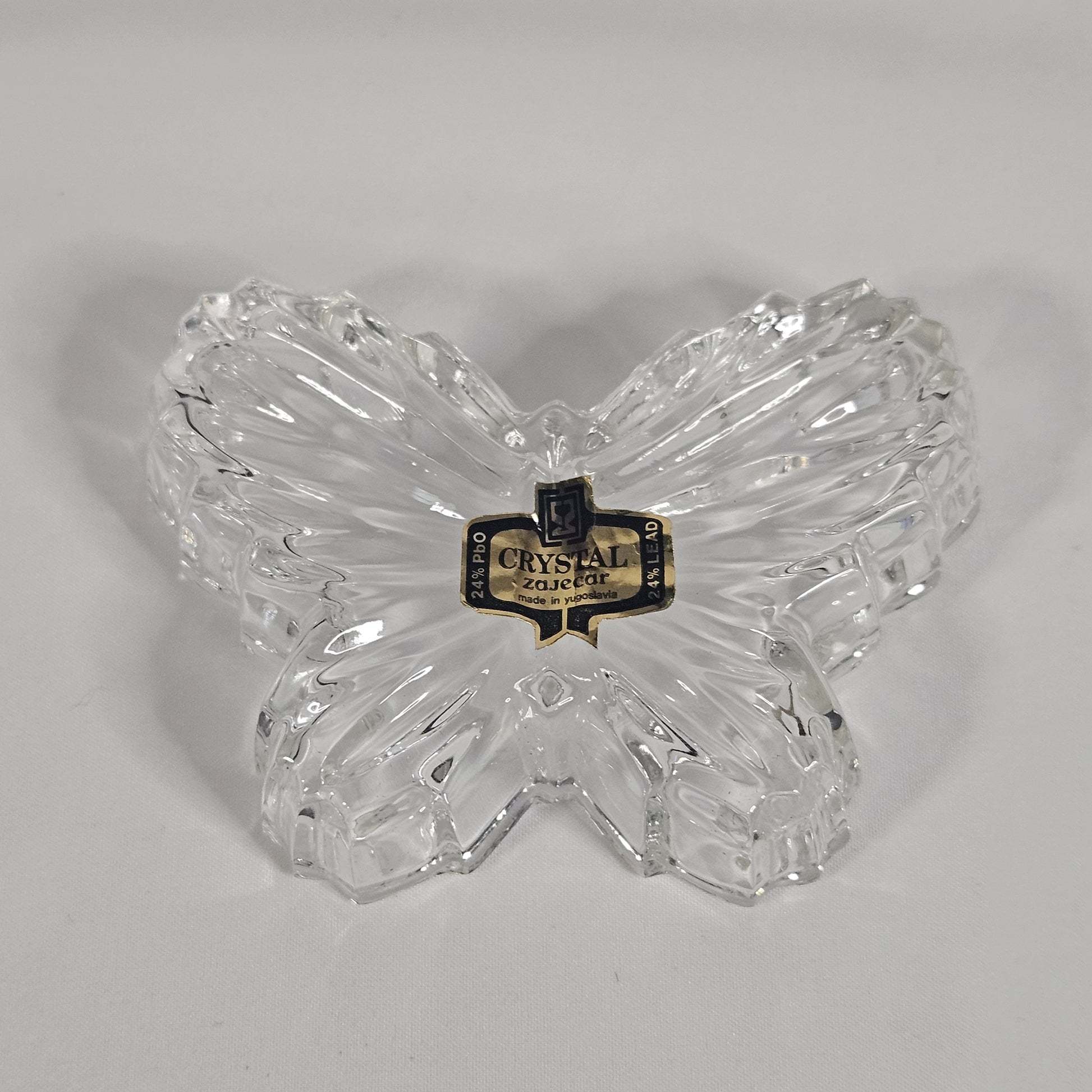 Vintage Zajecar 24% lead crystal butterfly trinket dish with lid, made in Yugoslavia. Excellent condition. Dish is 3.5" x 2.5" x 1"