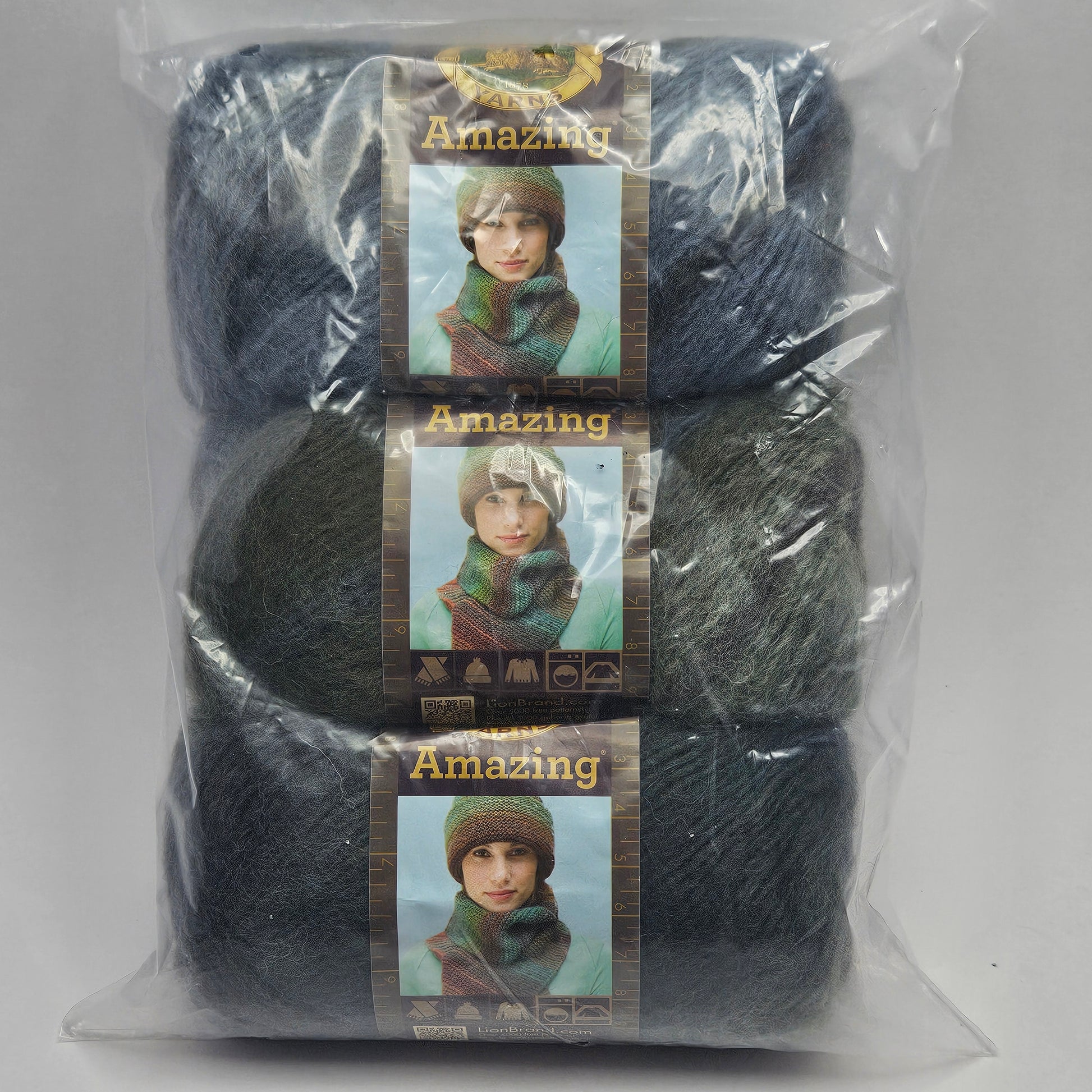 Lion Brand Amazing Yarn 53% wool 47% acrylic 3 Skeins Same Lot, Olympia, 4 Med