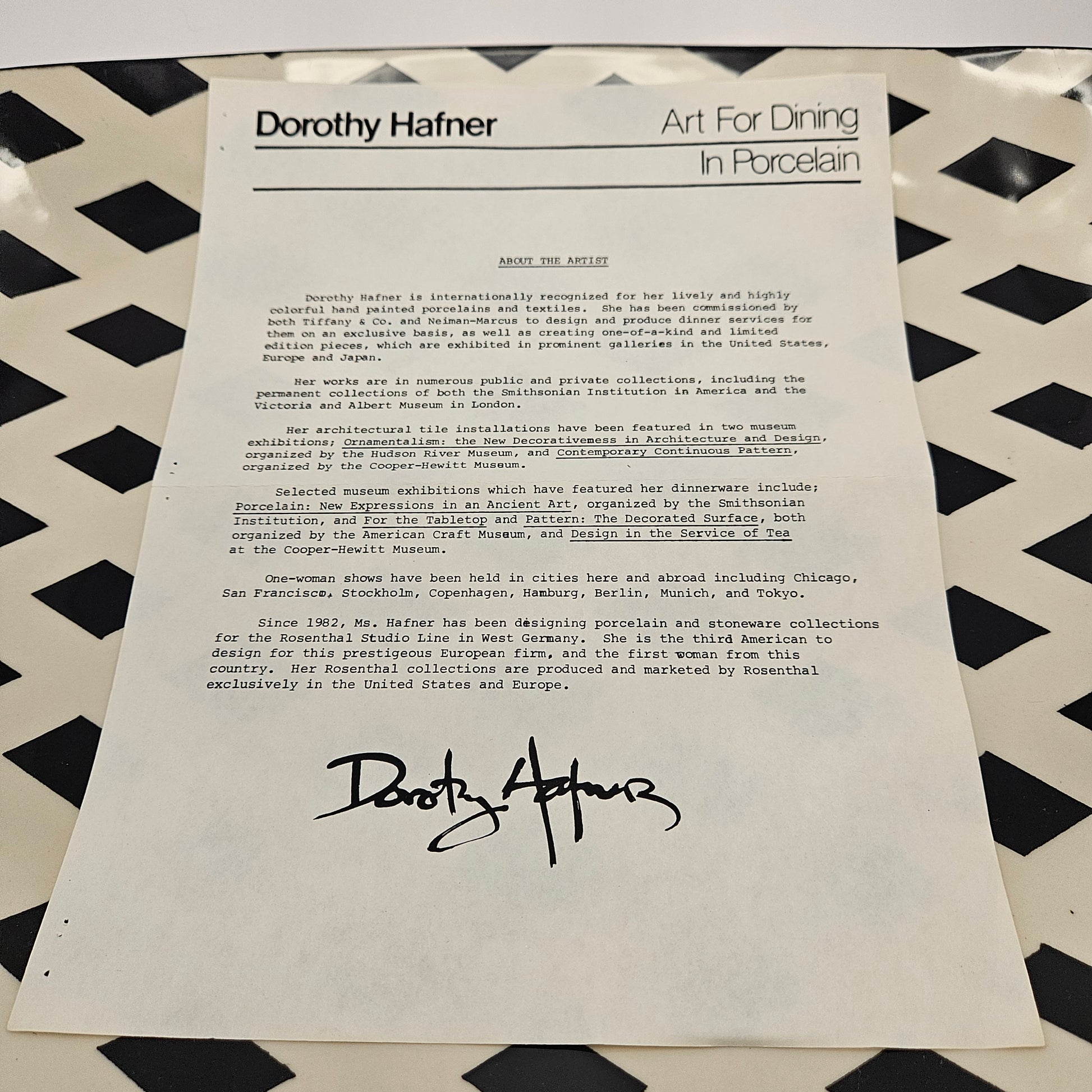 RARE Vintage Dorothy Hafner STATS 17" Platter, 1984, White Harlequin pattern