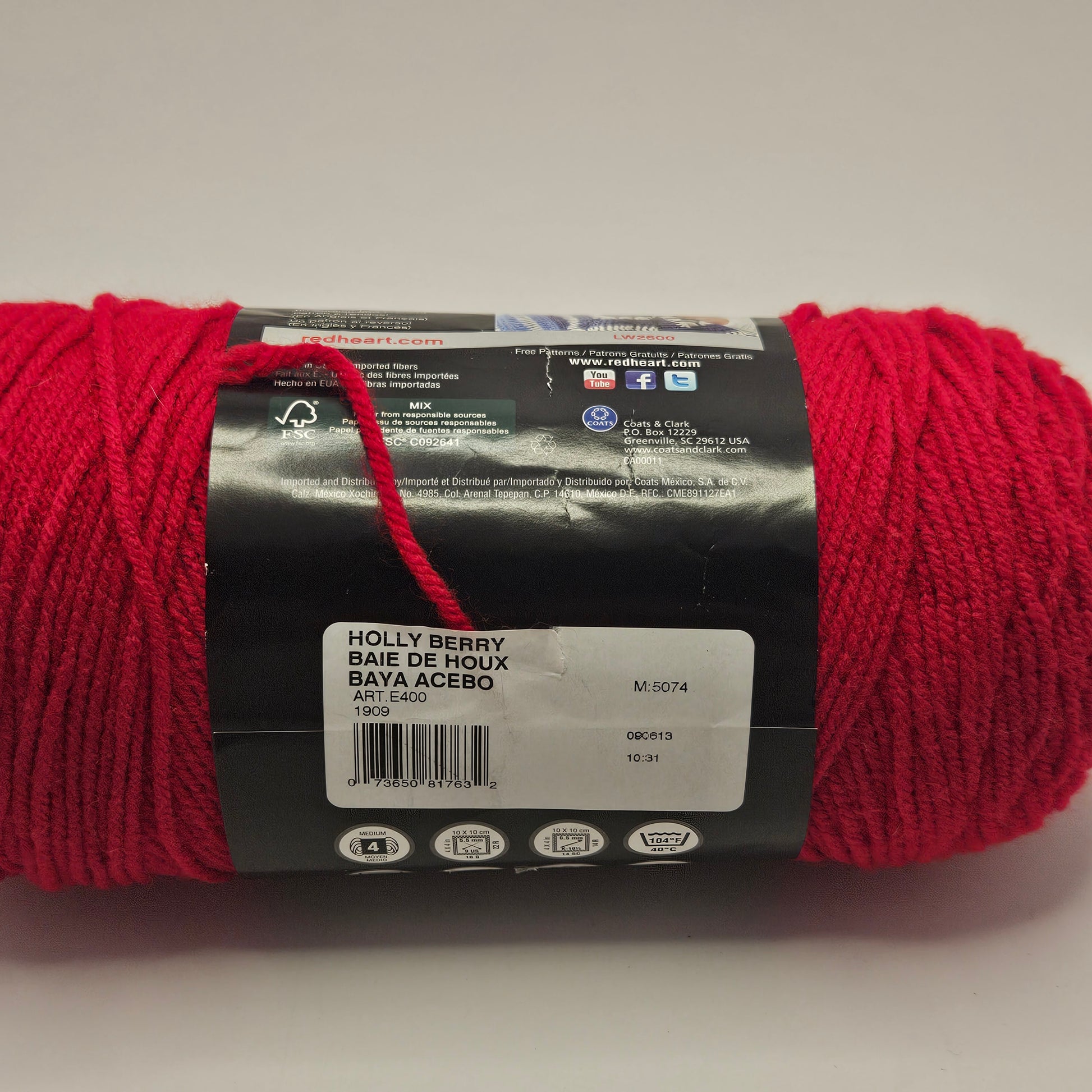 Red Heart With Love Yarn 5.6 oz Skein Acrylic Color Holly Berry
