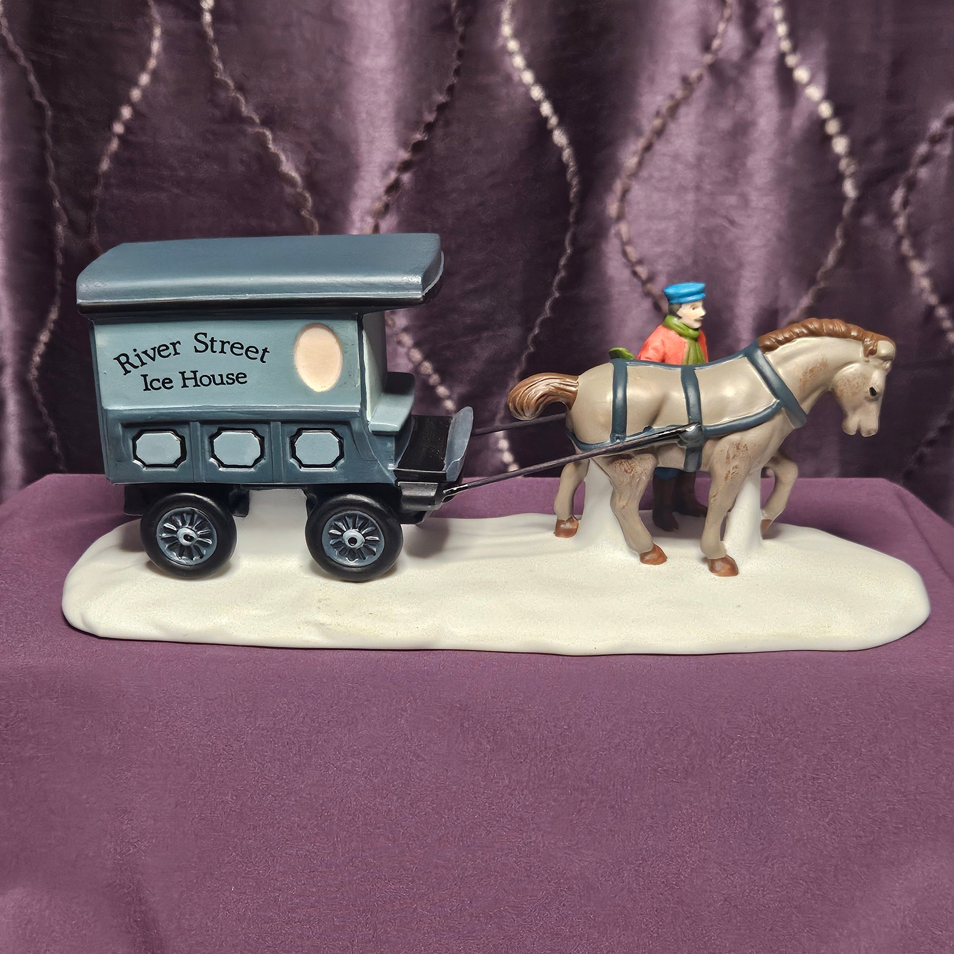 River Street Ice House Cart, Department 56 Heritage Village, #5959-5, vintage hand painted porcelain accessory, 1989, with original box and packaging