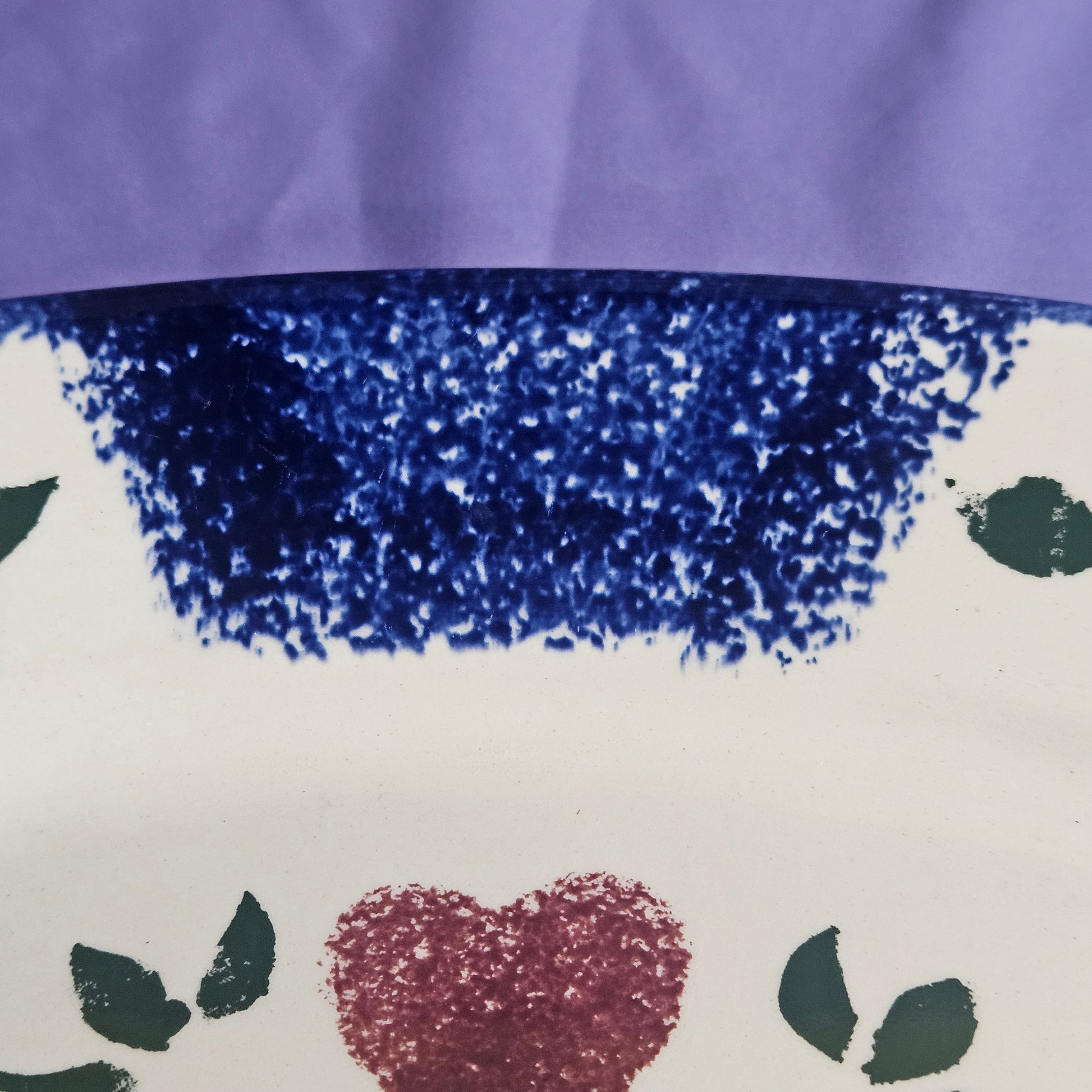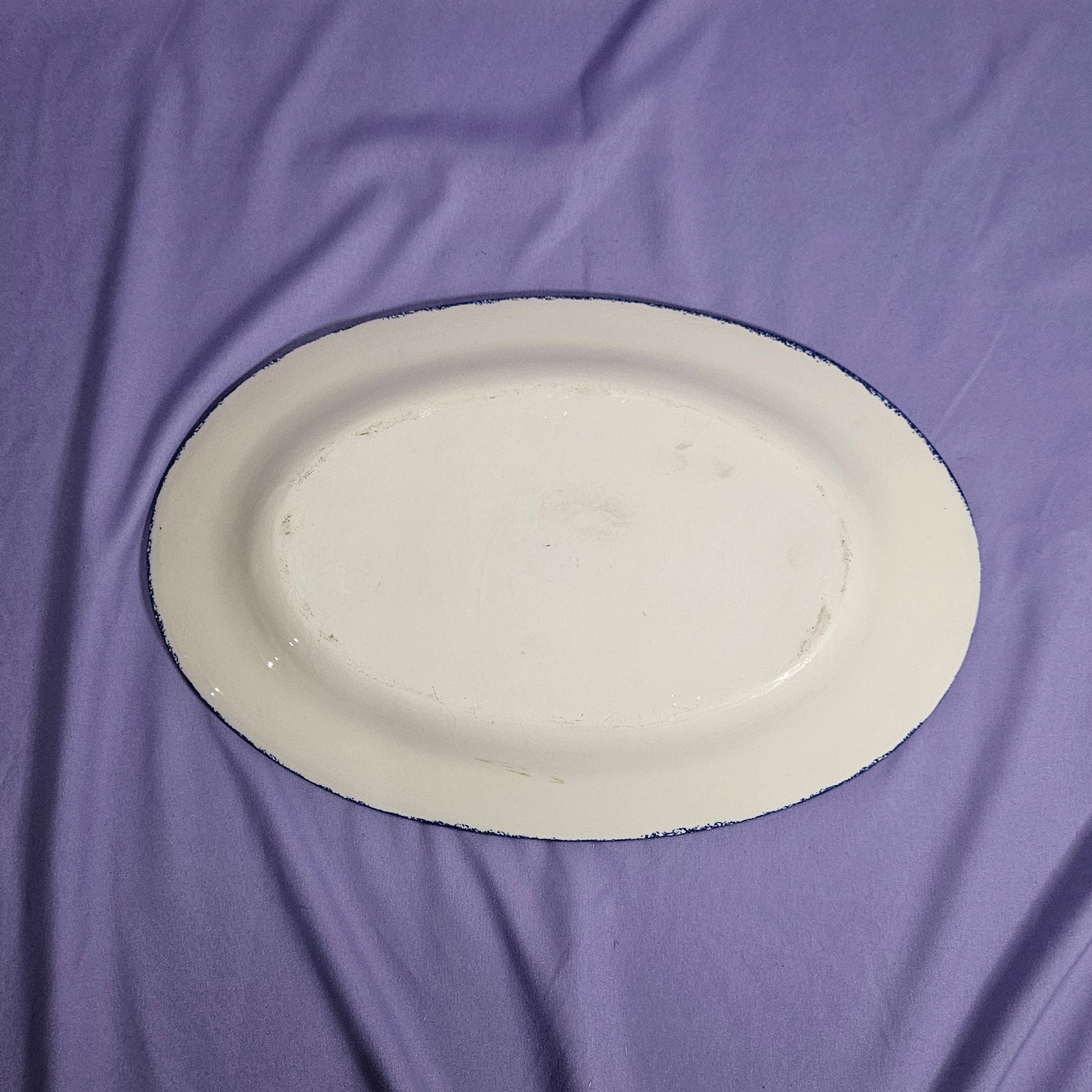 Spongeware oval platter with heart motif, 10x15,